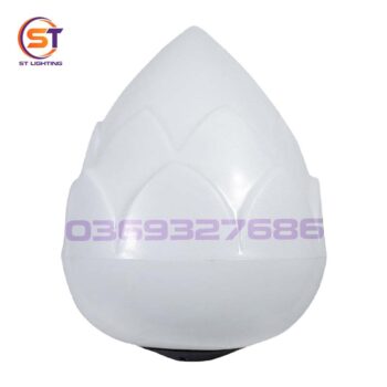 - Đèn bóng hoa sen làm bằng nhựa PE hoặc nhựa PC màu trắng đục chịu nhiệt độ cao. Đèn trang trí sân vườn hoa sen được thiết kế kín chống được nước và bụi, không bị ảnh hưởng bởi thời tiết.