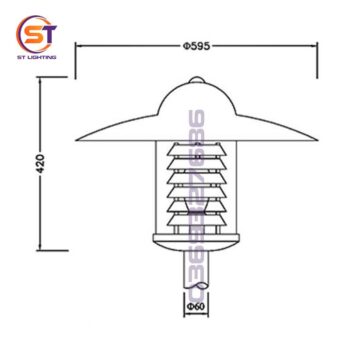 - Phần chụp trên của đèn bằng tôn dập sơn tĩnh điện