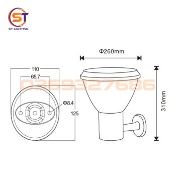 Kích thước đèn Φ260 x 310 mm