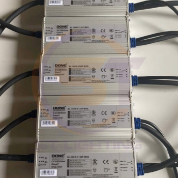 Nguồn đèn led DONE DL-100W-V143P-MXG dim 5 cấp được cấu tạo từ các linh kiện nhằm tạo ra dòng điện và điện áp phù hợp nhất sử dụng cho chip led. Nó bao gồm rất nhiều phụ kiện nhỏ, tiêu biểu là: diode chỉnh lưu, khối làm phẳng xung điện đầu ra,  khối công suất hạ điện áp xuống ngưỡng điện áp hoạt động của đèn, bộ tụ lọc đầu ra nhằm tạo ra điện áp DC phù hợp nhất. Được thiết kế với khả năng chống chịu nước IP67 giúp nguồn driver DONE MXG dim 5 cấp hoạt động bình thường ngoài trời.